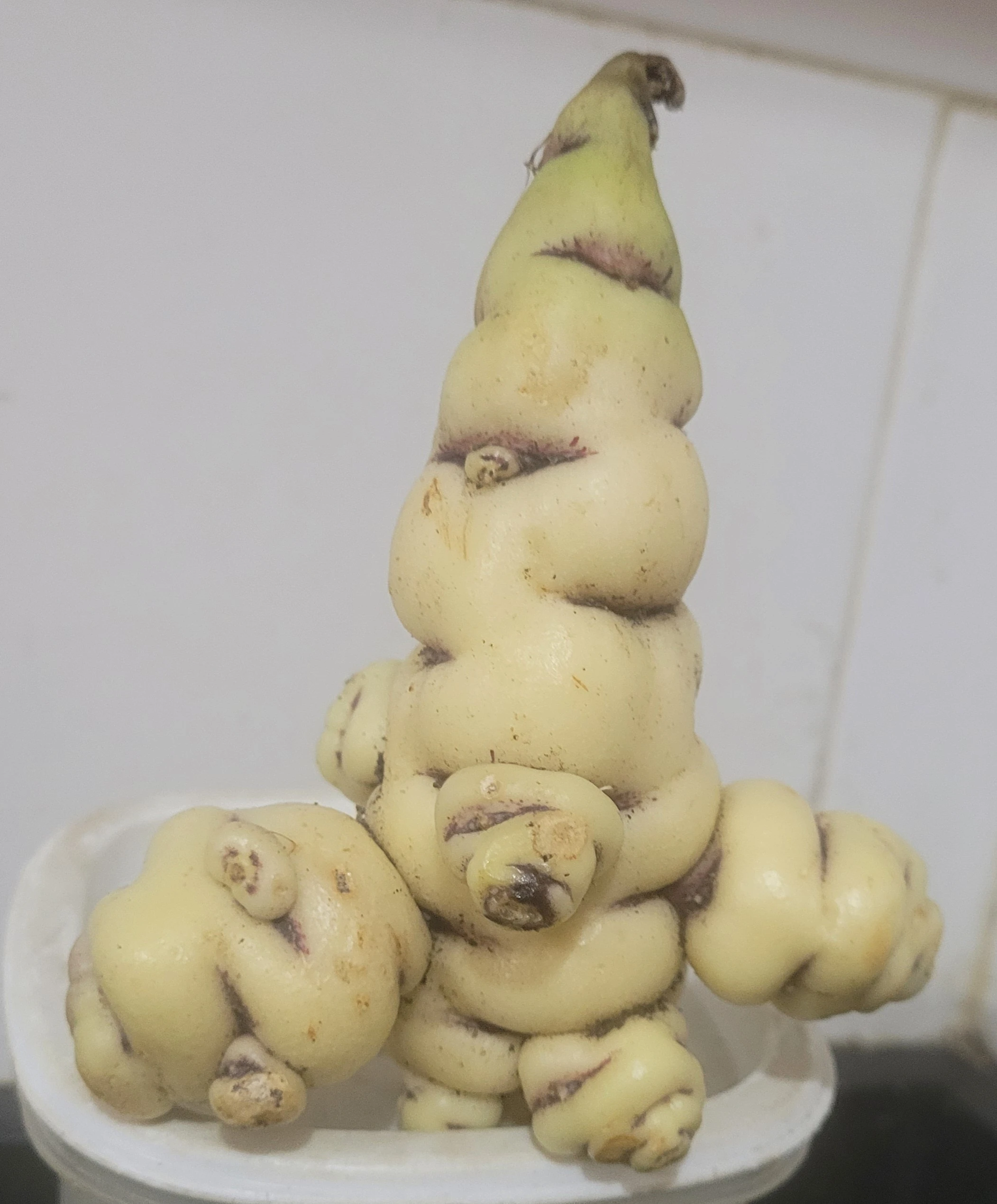 En la primera foto, cubio (una raíz, deliciosa en guisos y sopas, muy nutritiva!) con forma de muñequito duende (gorro triangular)!!