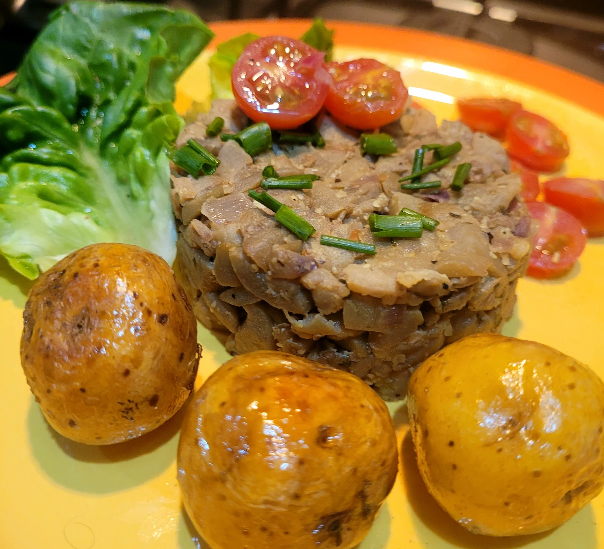 la ventaja de triturarlos es que se integran los sabores de manera más uniforme y la presentación queda más parecida a la de la morcilla convencional (hecha con carne).