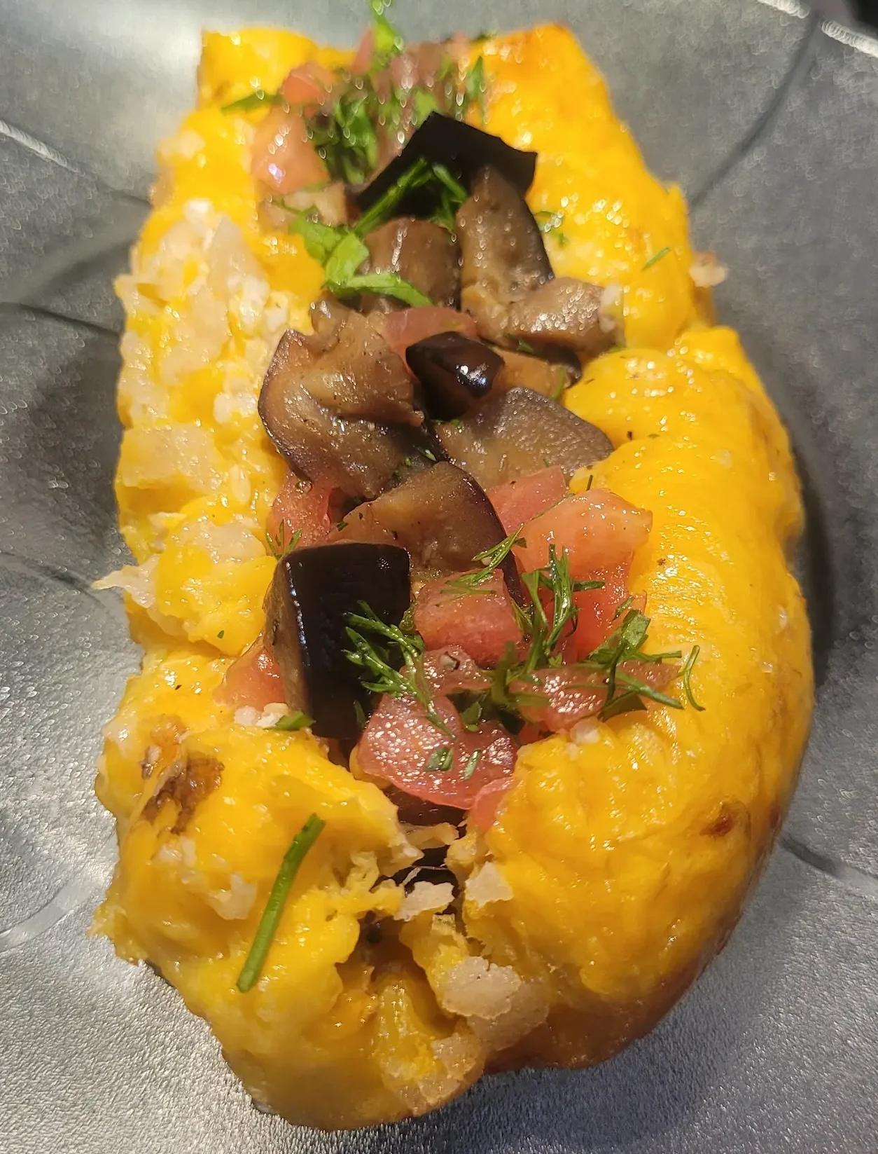 Plátano al horno relleno de berenjenas